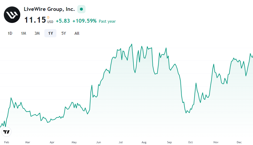 라이브와이어는 우리가 잘알고 있는 할리데이슨 전기 오토바이 사업부가 분사한 회사입니다. 라이브와이어(LVWR)는 현재 분할 당시와 거의 같은 수준의 주가로 거래가 되고 있으며, 시장 상황이 좋아지면서 2023년 4분기 이후 다시 상승 추세를 보여주고 있습니다.